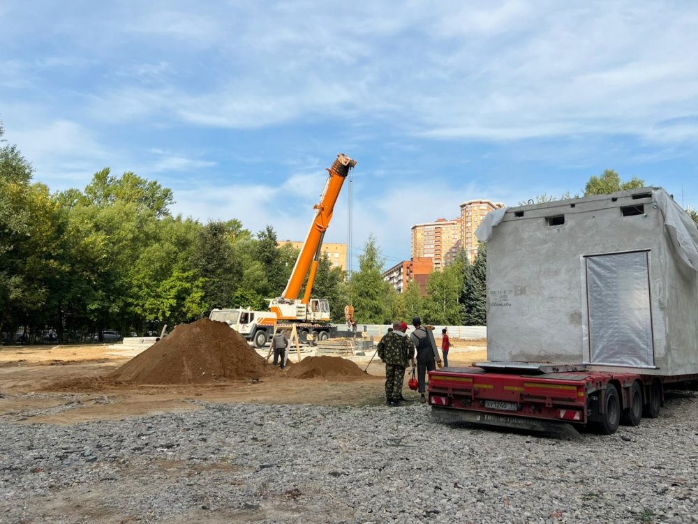 «Строители приступили к устройству инженерных сетей и гидроизоляции цокольной части фундамента. На площадку также доставлен первый модуль, так что в ближайшее время сможем приступить к монтажу конструкции здания», — рассказали в ведомстве.