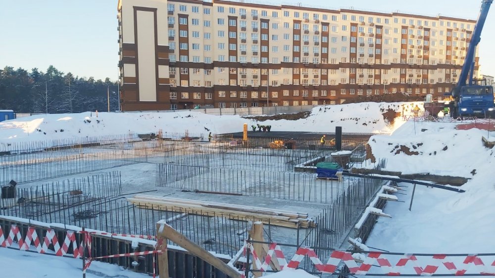 «На объекте завершены работы по устройству гидроизоляции фундаментной плиты, выполнена стяжка. Ведутся работы по армированию и бетонированию плиты основания здания. Работы в графике», — приводятся в сообщении слова министра строительного комплекса региона Владимира Локтева.