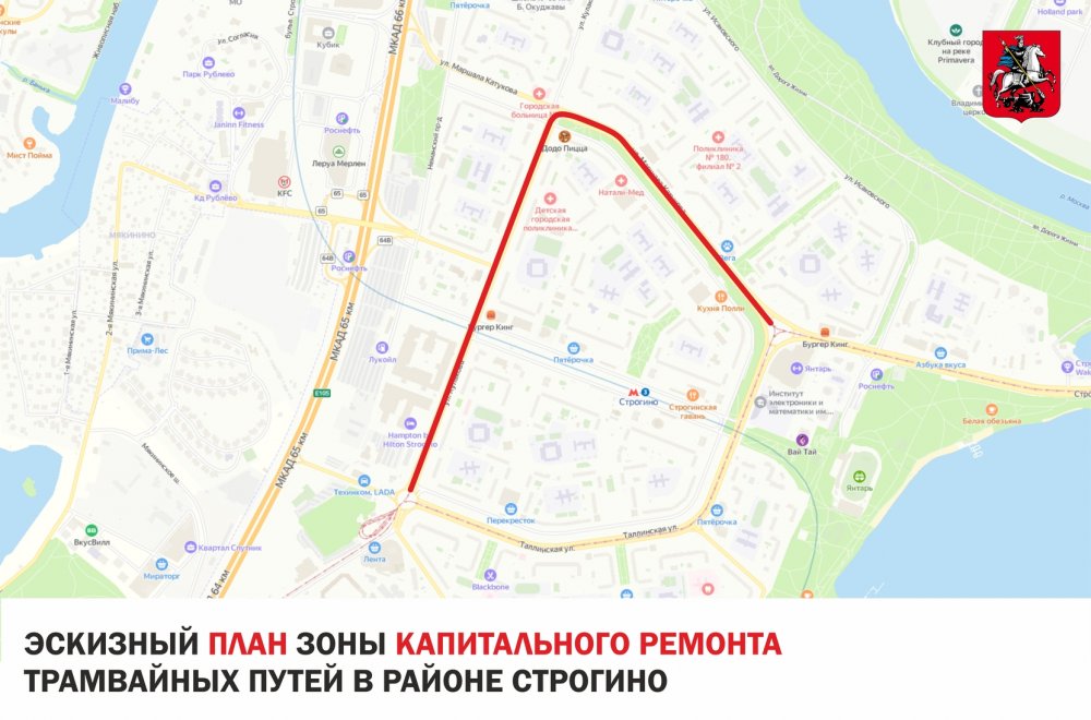 Комитет города Москвы по ценовой политике в строительстве и государственной экспертизе проектов (Москомэкспертиза) сообщает о согласовании проектной документации для объекта «Капитальный ремонт трамвайных путей на объекте: «ул. Кулакова (от узла «Строгино — оборотное кольцо») — ул. Маршала Катукова (до узла «Таллинская ул. угол ул. Катукова»)» по адресу: район Строгино, Северо-Западный административный округ города Москвы.
