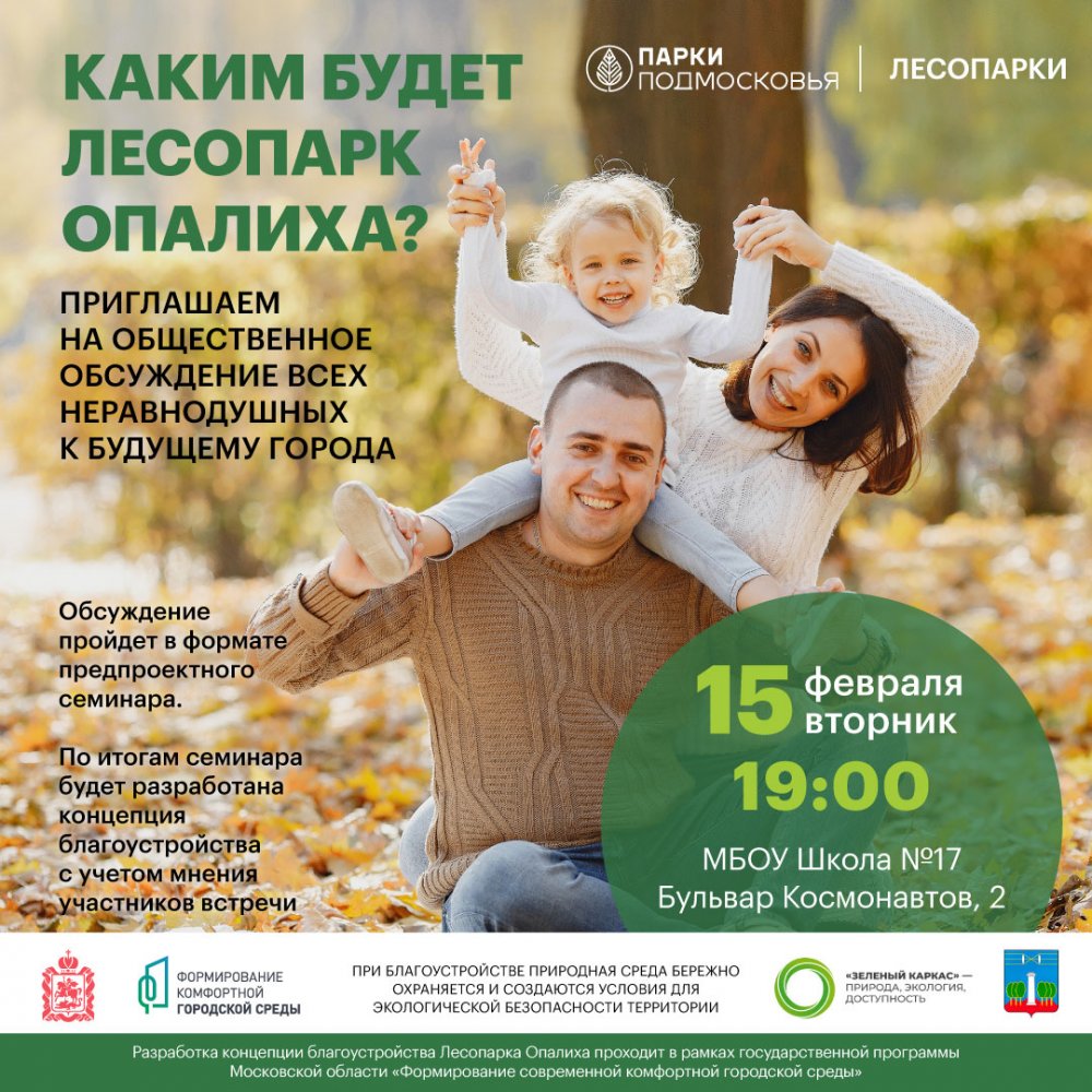 15 февраля в 19:00 в г.о. Красногорск состоится общественное обсуждение по вопросу будущего лесопарка Опалиха.